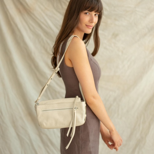 Zim is an everyday, functional handbag made from soft, vegetable-tanned goat leather. It features a comfortable adjustable strap, while silver zippers and fittings add character to its design. With the capacity to hold a substantial amount, it maintains its graceful appearance. This versatile bag complements not only oversized blazers and dresses but also pairs well with leather jackets.