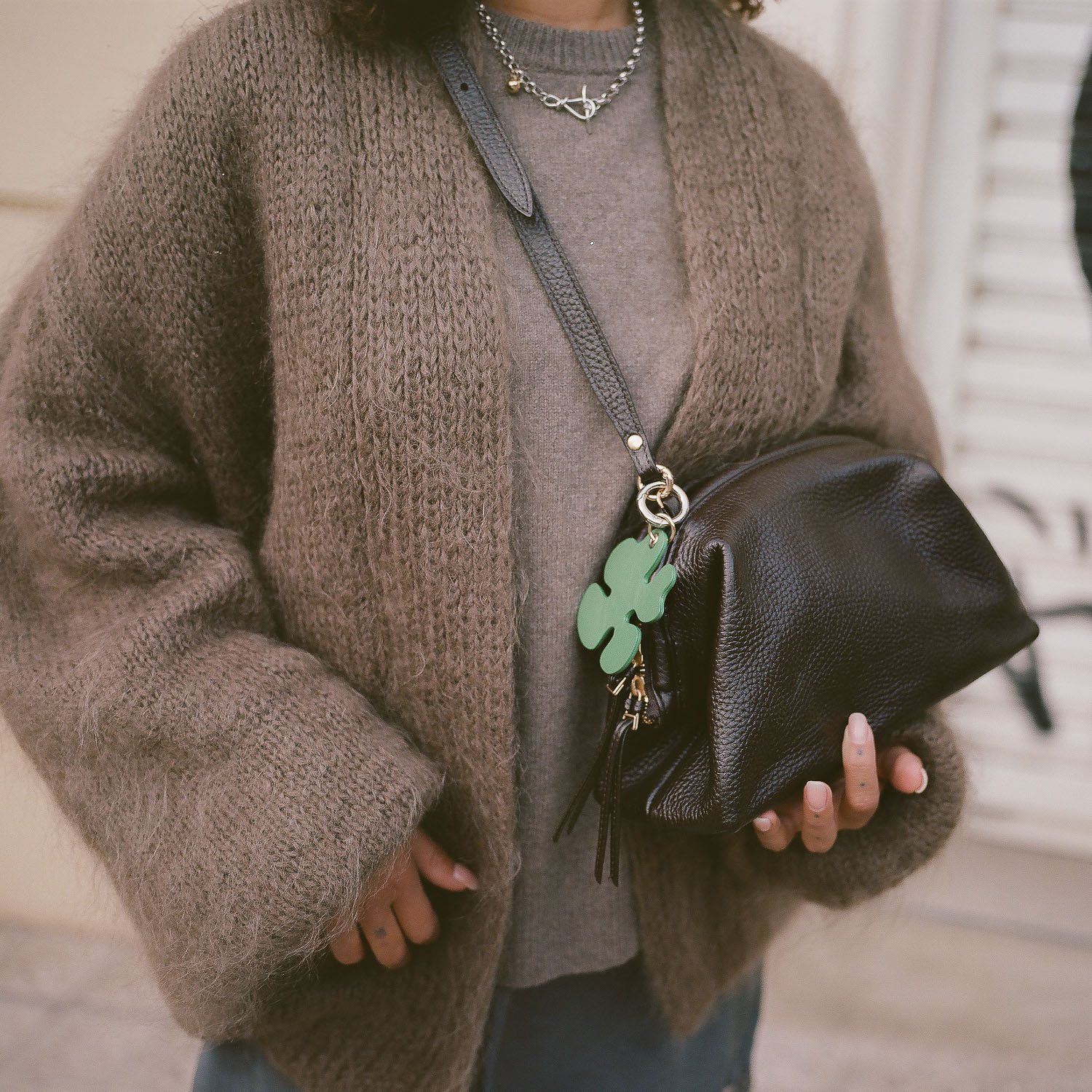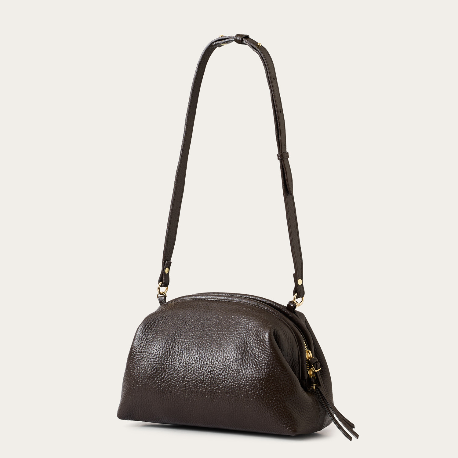 Rosalia is a compact bag — a classic with a twist. Made from premium leather and finished with a soft lining and inner pocket, it combines timeless design with everyday ease. Its silhouette subtly echoes our cult favourite, the Hug. Thanks to the long, adjustable strap, you can wear it over the shoulder or crossbody, depending on the day (or your mood). Great for everyday wear, but ready for a night out too. Want to dress it up? Swap the strap for our gold chain for an extra touch of elegance.
