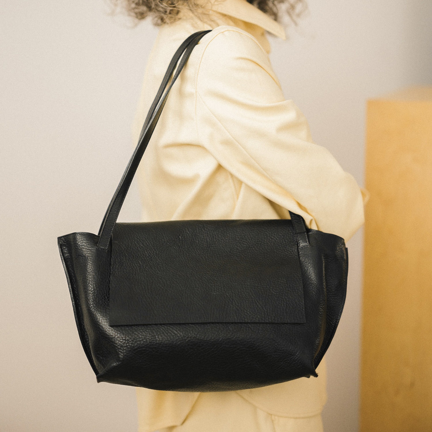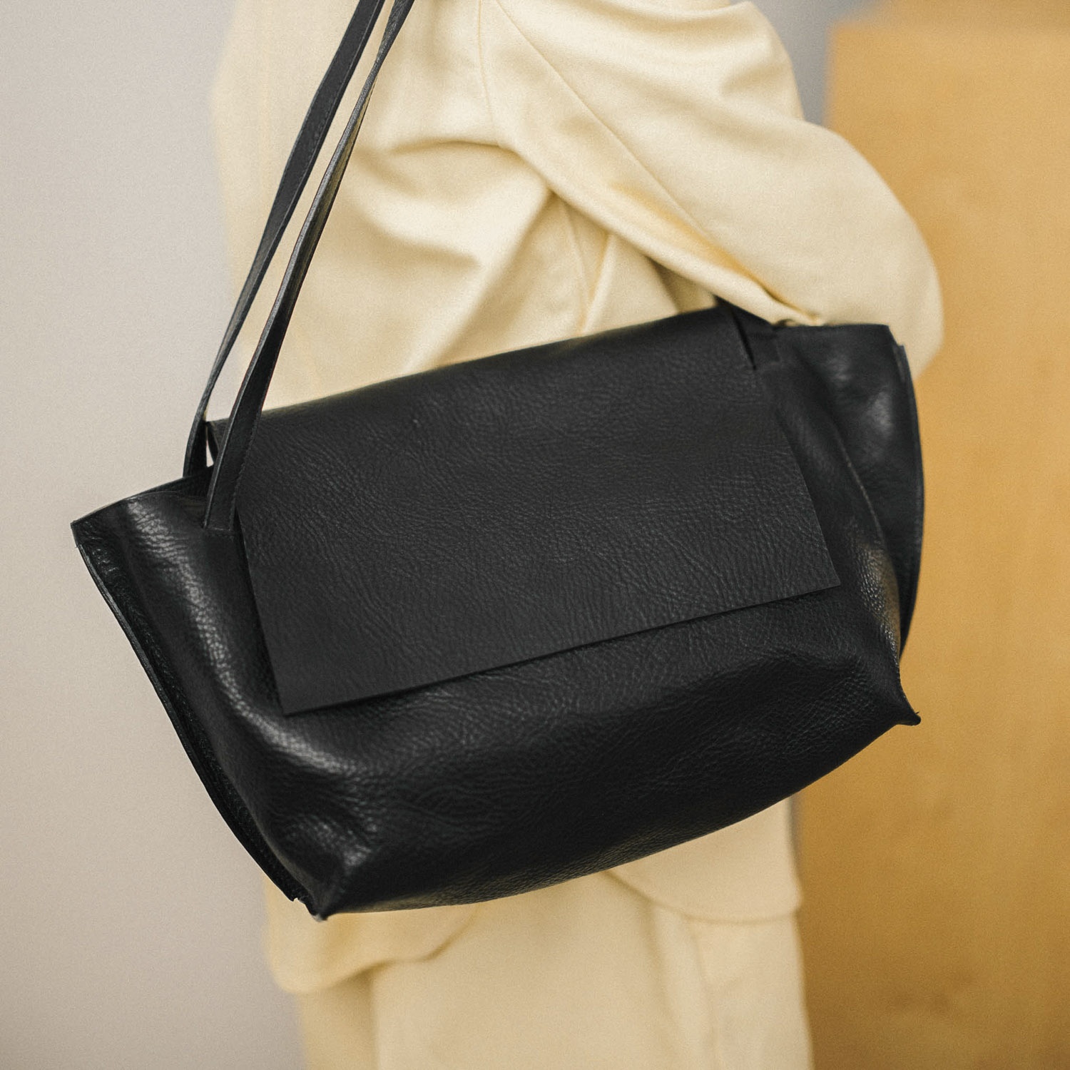 Isha is the new Balagan urban bag. It’s handmade and sewn out of high quality grain leather, carefully finished with a cotton lining. It has an inside narrow pocket for keys, phone, small wallet or business card holder. With a flap on its top, in a classic, minimalistic form. Soft and spacious inside, works for both - business meetings and evening event, jacket and a sweater. Isha means ‚woman’ in Hebrew - to stand Isha bag out among other everyday bags, we gave it a subtle trapezoidal shape and interlaced (unregulated!) strap to make it more comfortable to wear - on the shoulder or in the hand.