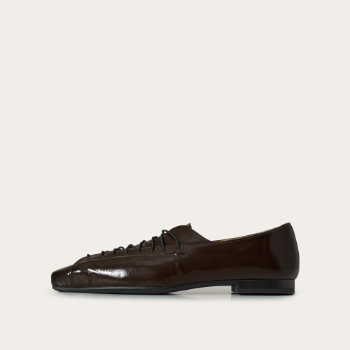 Glossy models are made from soft natural leather coated with a layer of lacquer with a slightly crinkled texture, known as naplak. Like all leather shoes, they crease where the foot bends, and these creases are a natural sign of wear.