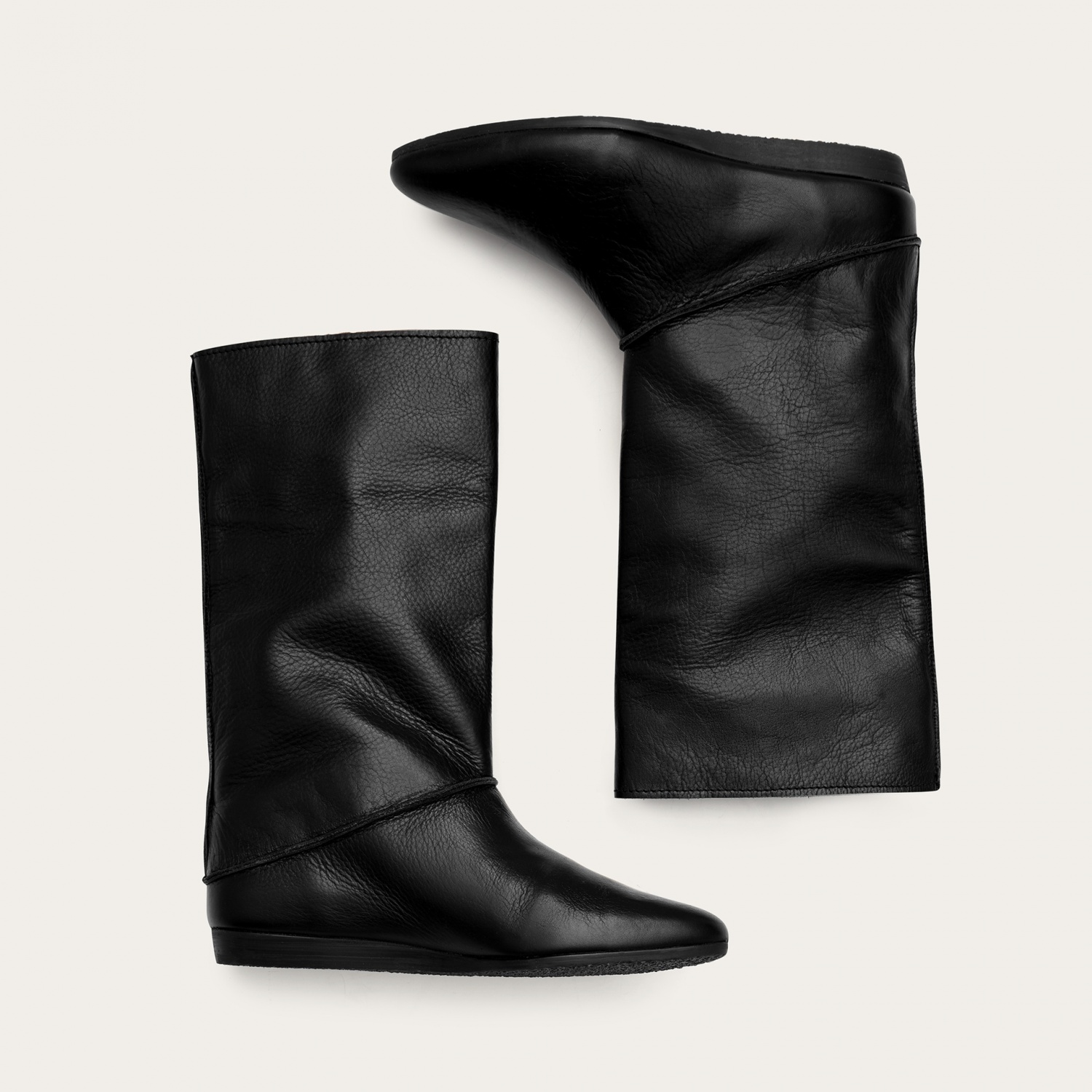 A design that has not gone out of fashion for years and has been renewed for many seasons. These are classic boots with high, wide uppers, well known to our mothers and grandmothers. They are made of high-quality, noble natural leather and a pure cotton lining. They fit both elegant and casual stylizations. The loose upper slims the leg when choosing shorter skirts or dresses, but it will successfully fit the narrow pantleg of regular  trousers. Sasha have no zippers or buckles, they are soft, slip-on ankle boots with decorative outer seams and a studded, stable sole.