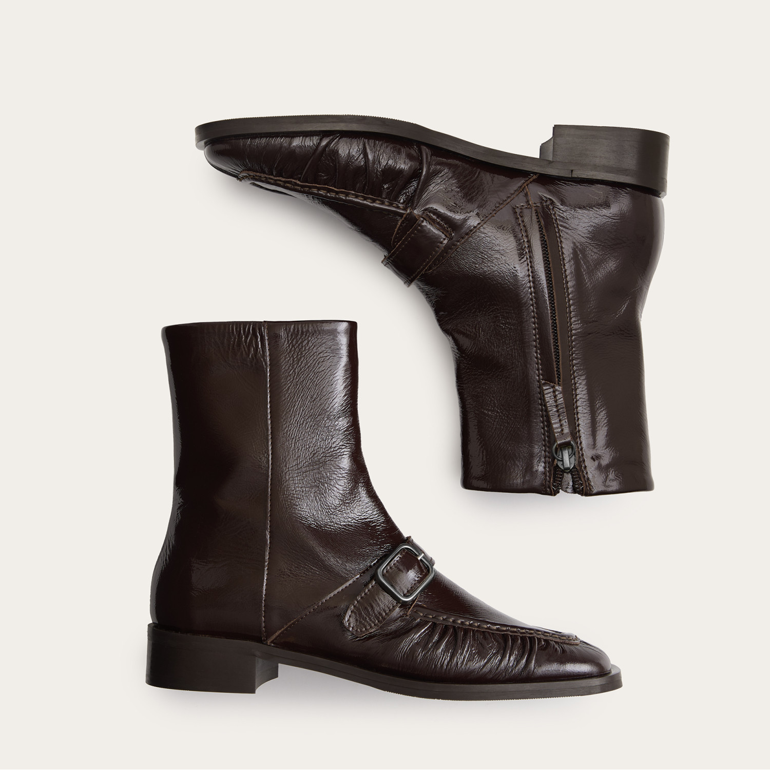 Umbria are our new ankle boots. They are pretty elegant and have several details that we fell in love with – let's start with the buckles on the upper. So classy! We also like the subtle wrinkling. They remind us of the lightness, comfort and charm of many summer ballet or boat shoes, transferred to autumn and winter aura. Umbria boots have a zip fastening, which you will certainly appreciate. They also have a low, everyday heel.