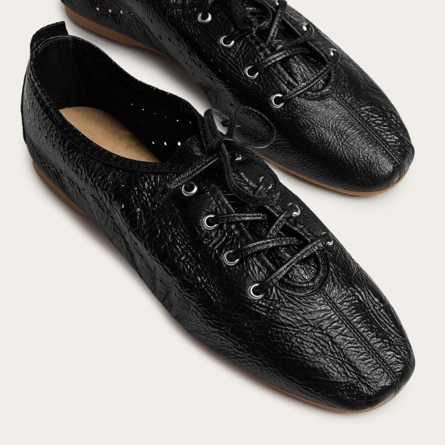 Jazz is all about movement and ease. Light, soft, and effortlessly comfortable, these lace-ups take inspiration from classic dance shoes. Made from supple, unlined leather, they gently adapt to your foot, allowing it to breathe and move freely. Finished with leather laces, metal eyelets, and a soft suede insole, they’re perfect for all-day wear—whether you're on the go or taking it slow.