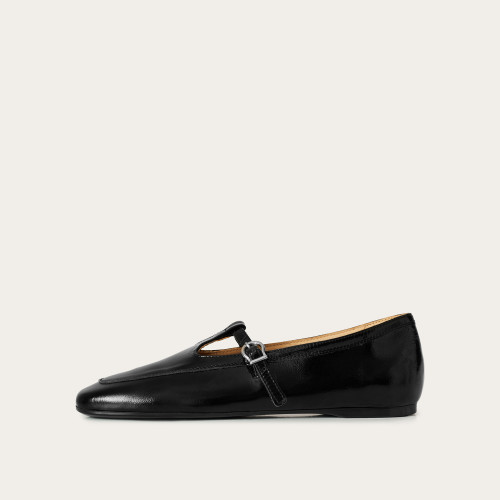 Straps, buckles, fasteners - beautiful details from years ago, frequently returning to global runways. Classics always stand their ground - the Carina model is our new T-bar shoe. Modeled after our bestselling Captain, they feature subtle cut-outs and a delicate transverse strap with a silver buckle. They are crafted from beautiful patent leather that gains character with use. Carina flats are very comfortable from the very first walk and soften even more over time. They pair well with trousers and dresses, looking great on bare feet or with socks.