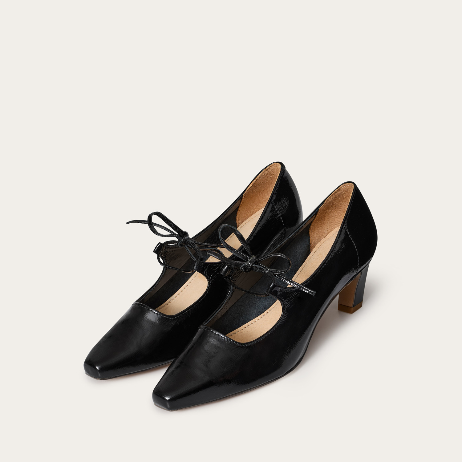 Glossy models are made from soft natural leather coated with a layer of lacquer with a slightly crinkled texture, known as naplak. Like all leather shoes, they crease where the foot bends, and these creases are a natural sign of wear.