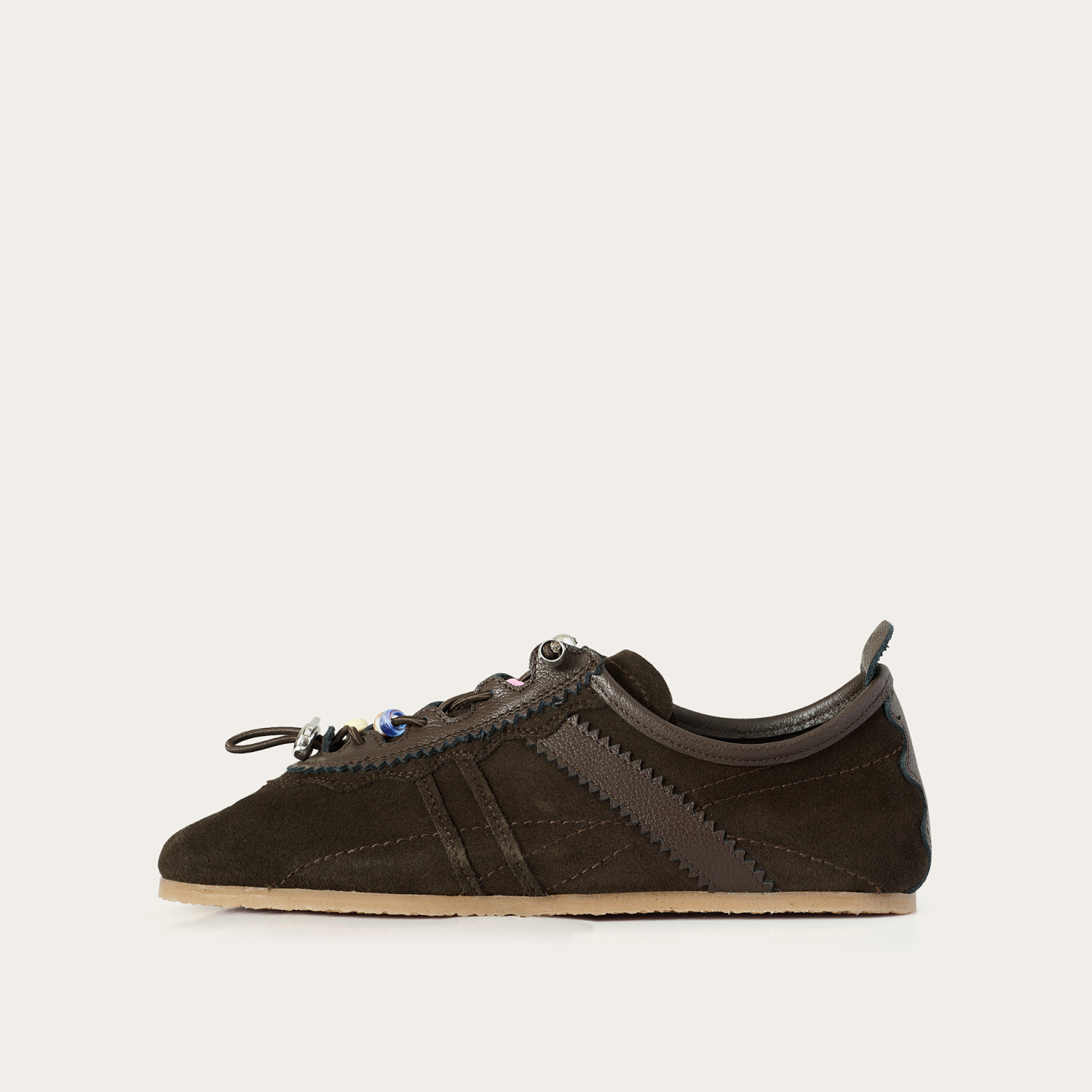 Meet the new Gent sneakers! What do you think? We are absolutely in love, especially with those decorative beads on the elastic drawstring. We look at them with a hint of nostalgia, imagining the warm months ahead and that carefree feeling. Think of all the places you'll go, choosing uncompromising comfort. Crafted from soft bovine suede with no lining, the Gent sneakers quickly mold to your feet. The special foam under the insole and a heel wedge provide extra cushioning for ultimate comfort. Your best walks are just around the corner!
