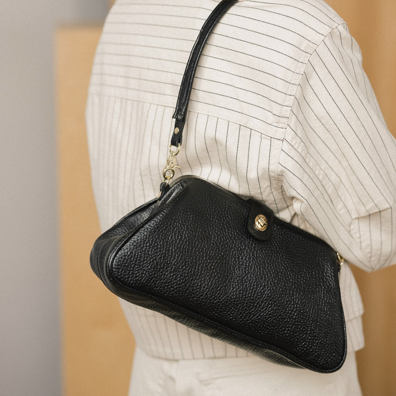 Pojemna Rofe L jest jedną z młodszych sióstr w rodzinie. To największa odsłona klasycznego kształtu portmonetki, stworzona z myślą o tych z nas, które potrzebują nieco więcej przestrzeni bez rezygnacji z elegancji. Jest pojemna i wyrazista, dzięki czemu staje się głównym punktem codziennej stylizacji. Ma krótszą rączkę i dłuższy pasek, które możesz nosić razem lub wymiennie - dzięki kółkom uchylnym sprawnie się odpinają.