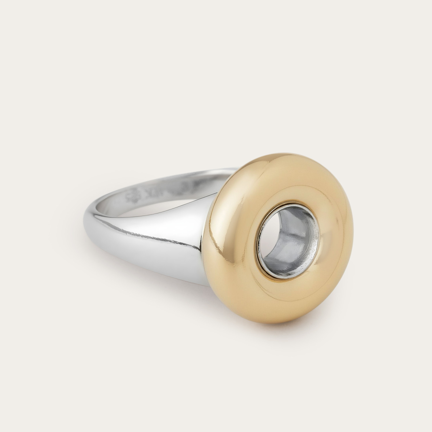 Nix to jeden z dwóch pierścionków z naszej nowej kolekcji biżuterii. Łączy dwa odcienie – srebra i złota, oraz motywy okręgów. Na srebrnej obrączce osadzony jest złoty dekoracyjny element o gładkiej, błyszczącej powierzchni. Nix ma symetryczną i harmonijną formę, wygodnie leży na ręku. Jest elegancki, a przy tym lekko zadziorny. Wykonany ze szlachetnych materiałów, które są trwałe i ponadczasowe.