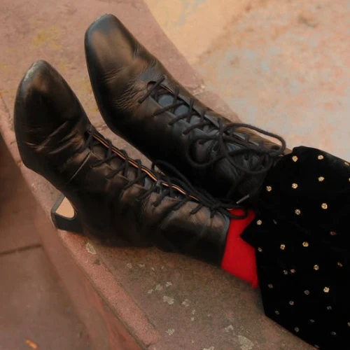 Victoria to nowy model botków na obcasie. Jak wszystkie propozycje Balaganu - łączą w sobie klasyczne wzornictwo i minimalistyczną formę. Inspirowane lekkimi, damskimi trzewikami minionej epoki, dodadzą charakteru każdemu codziennemu strojowi. Pasują zarówno do spodni, jak i sukienek - mają przylegającą, sznurowaną na całej długości cholewkę, która pewnie trzyma kostkę. Botki Victoria mają charakterystycznie wyprofilowane noski, które wysmuklają, ale nie wydłużają stopy, a dzięki niskiemu i stabilnemu obcasowi dotrzymają ci kroku i na spacerze i w pracy.