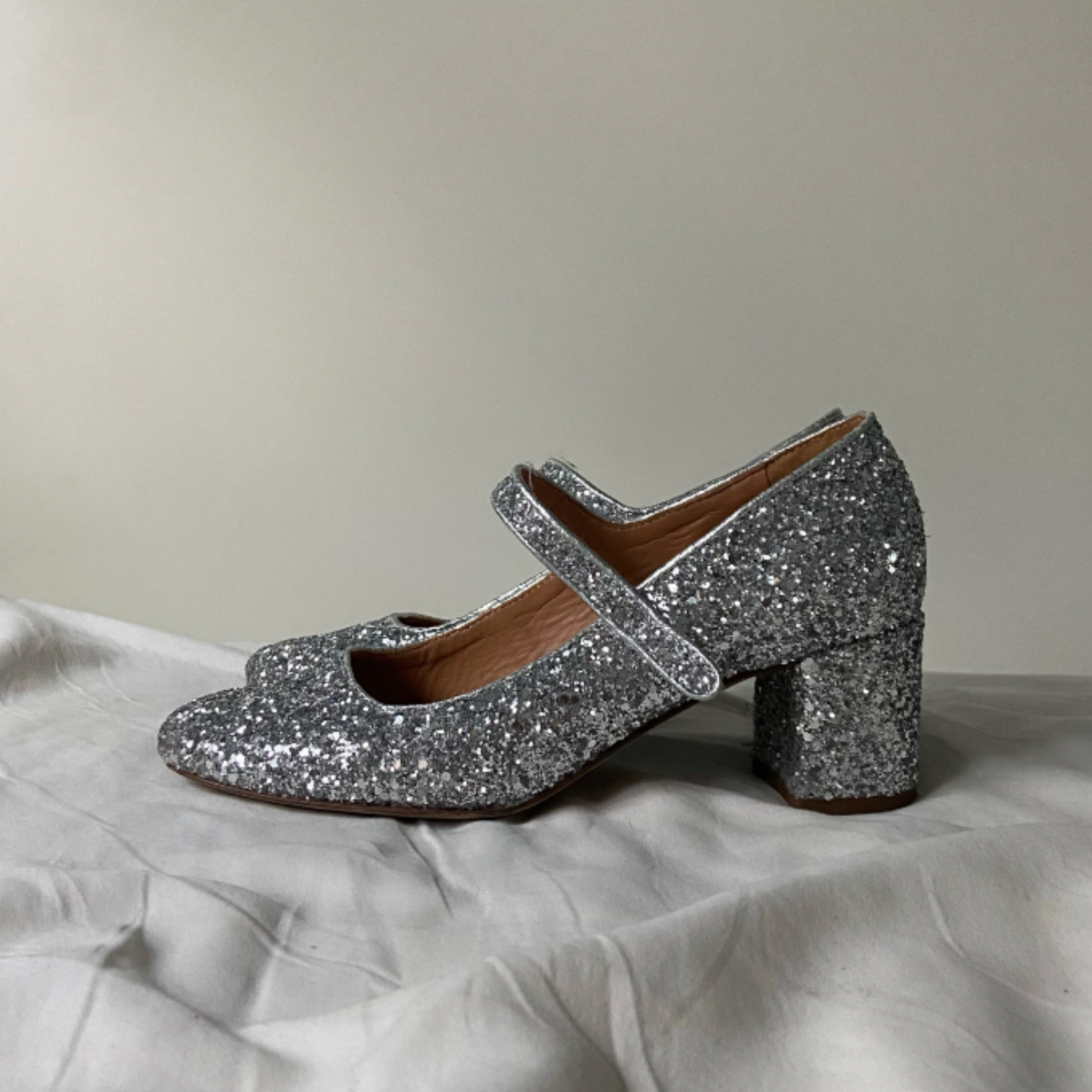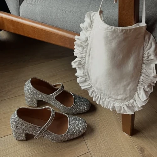 Dora czółenka na wysokim obcasie, srebrny brokat