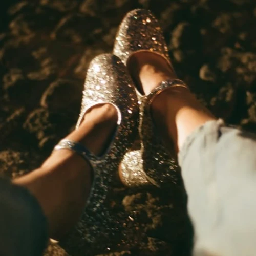 Cholewka: materiał tekstylny z brokatową okleiną
