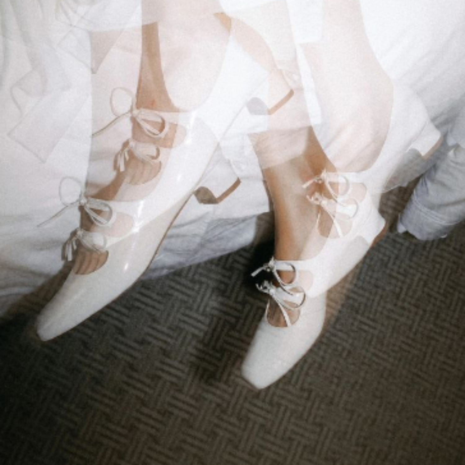 Greta czółenka, biały połysk