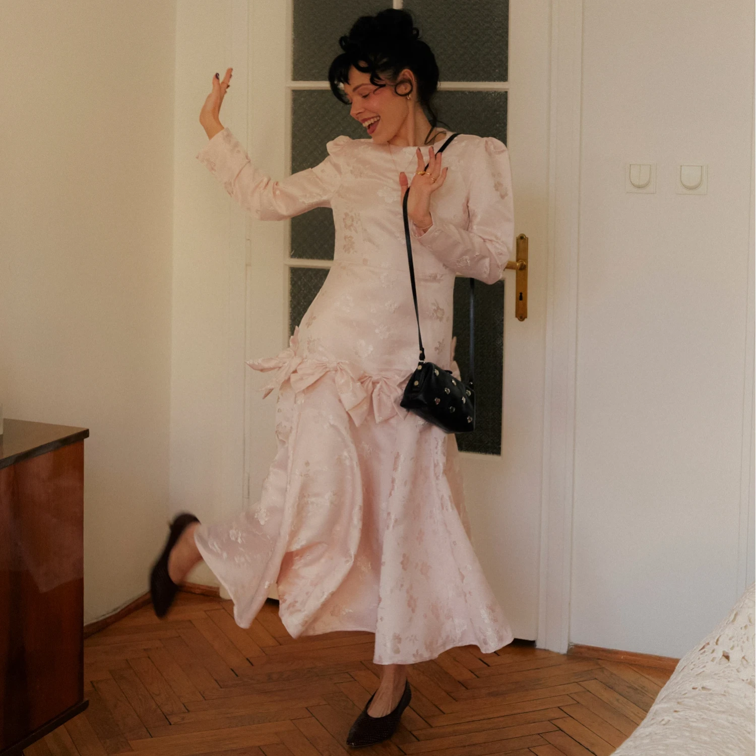Modele z połyskiem wykonane są z miękkiej skóry naturalnej pokrytej warstwą lakieru o lekko gniecionej teksturze zwanej naplakiem. Te modele jak wszystkie skórzane buty marszczą się w miejscach zginania stopy, a zgniecenia są naturalną oznaką użytkowania.