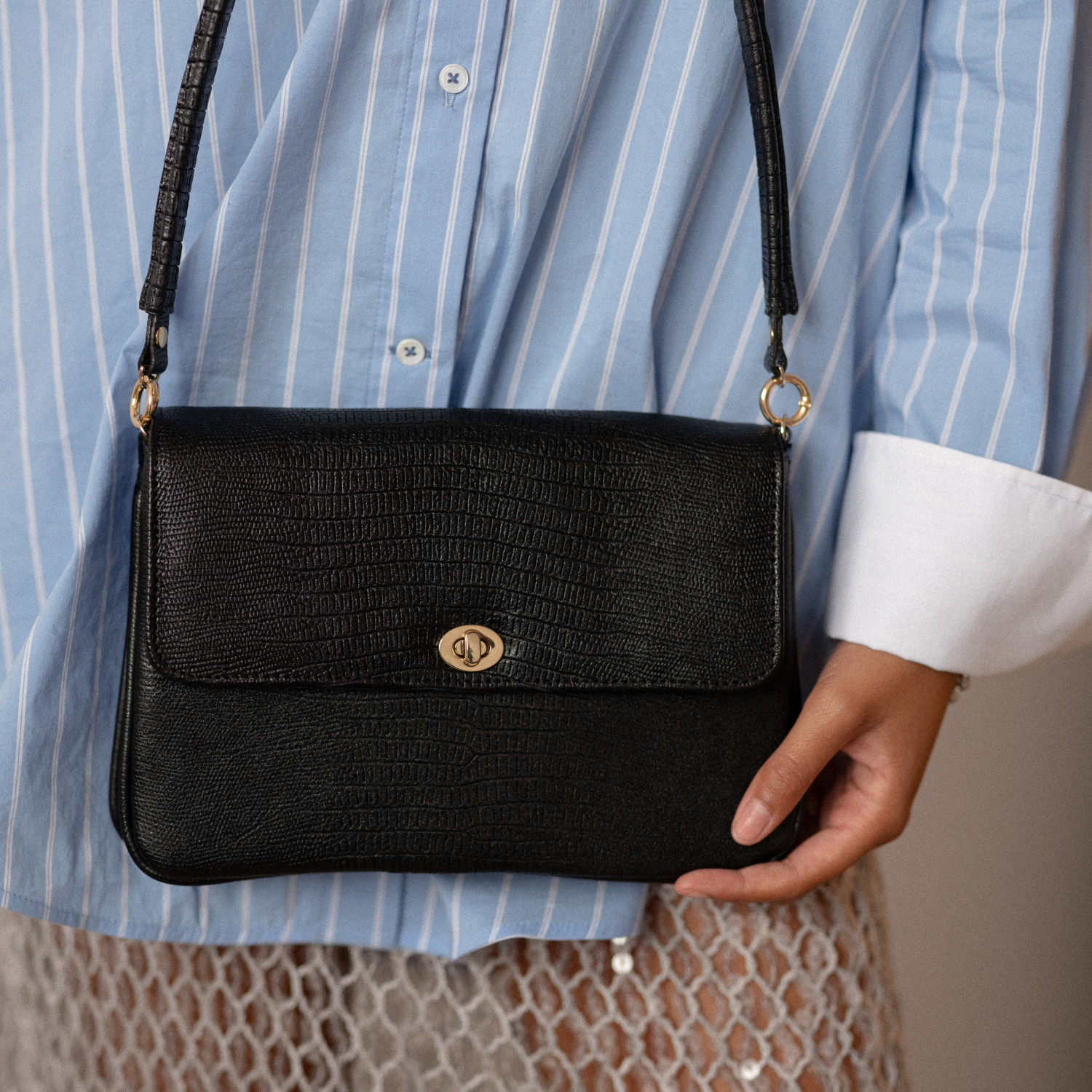 Gala torebka M, czarny wzór jaszczurki