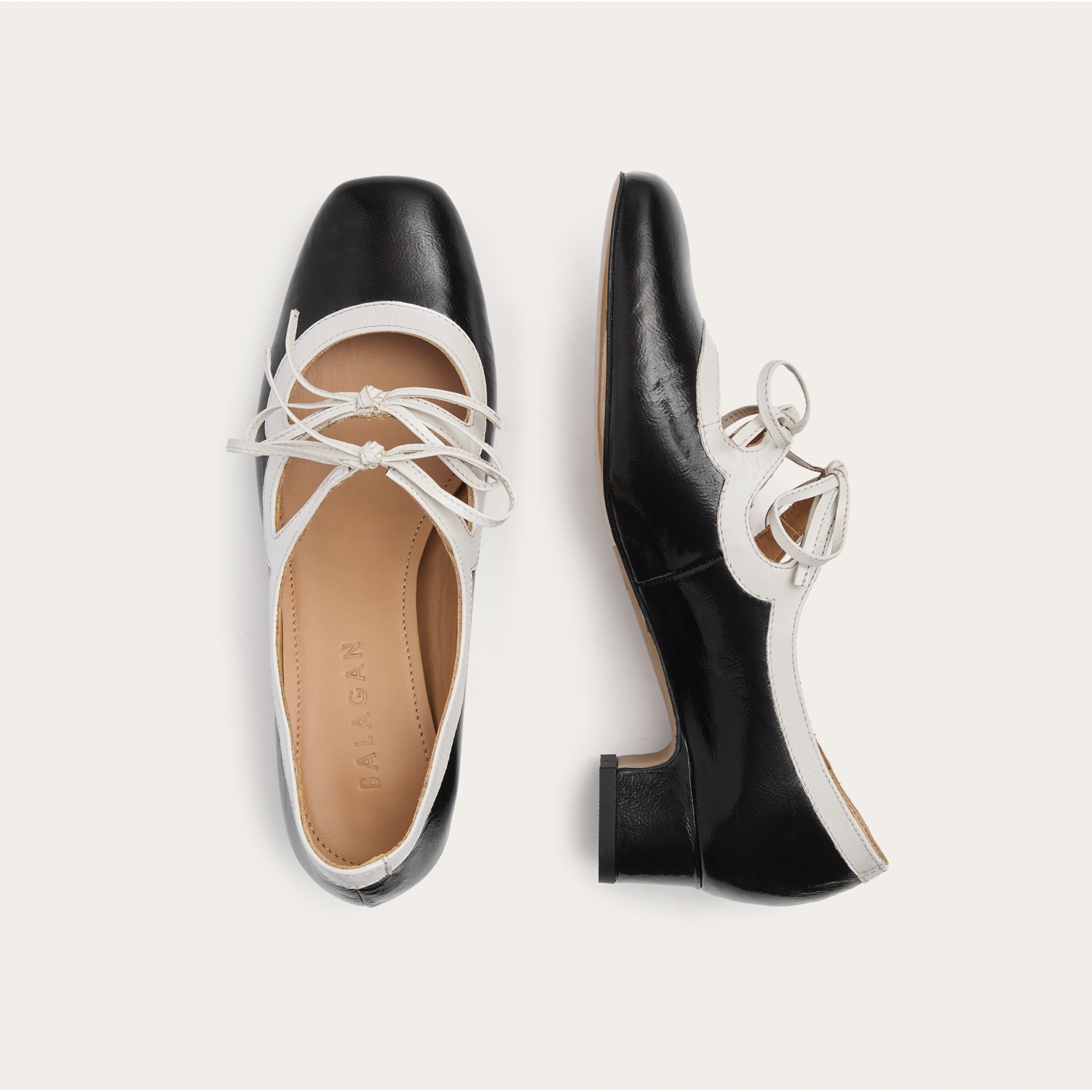 Greta czółenka, czarno-biały połysk OUTLET