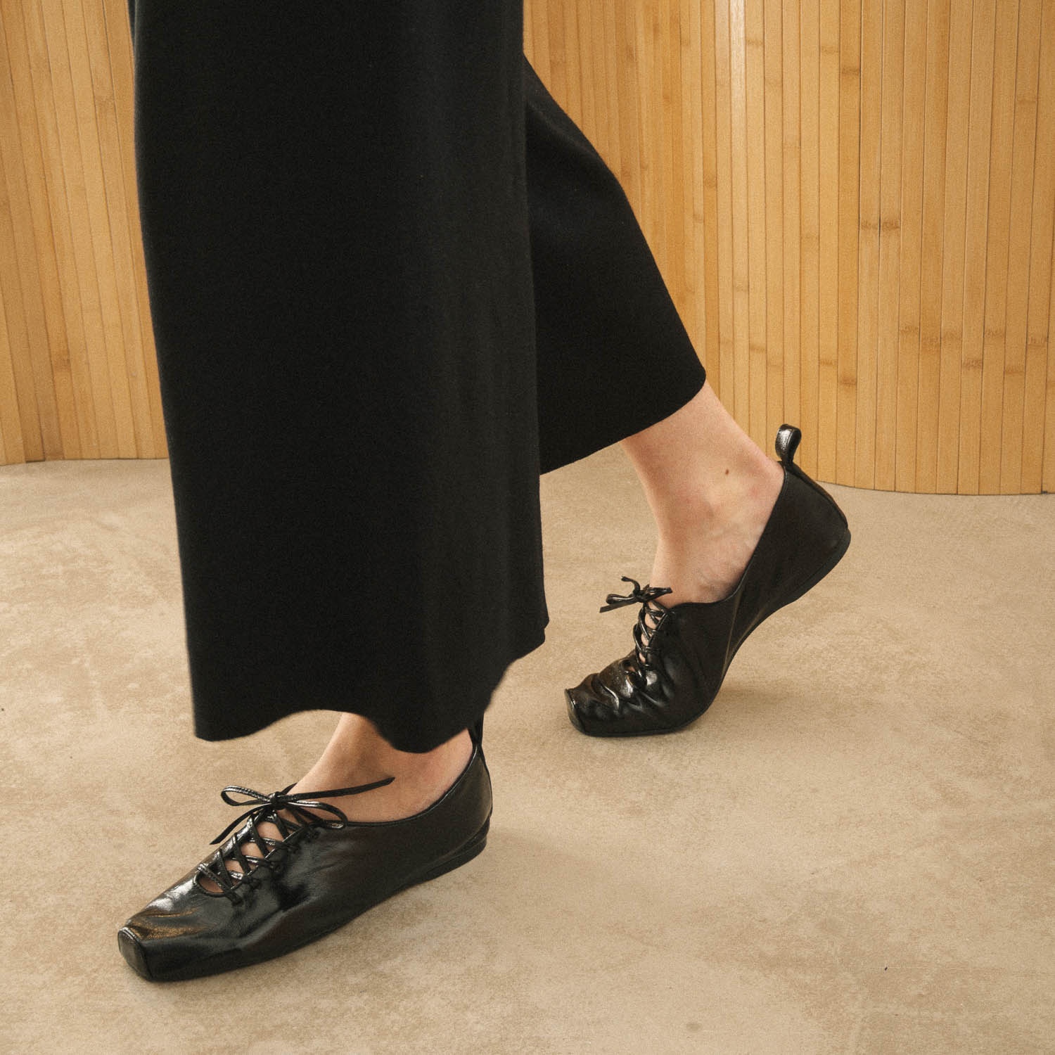 Corset to miękkie i niezwykle wygodne półbuty. Jak sama nazwa wskazuje charakteryzują się dekoracyjnym i funkcjonalnym sznurowaniem. Sprawdzą się na poranne spacery i wieczorne tańce – możesz je łatwo wystylizować zarówno do eleganckiej sukienki jak i codziennych spodni. Dopracowane w każdym szczególe – mają marszczony nosek i skórzaną sznurówkę.