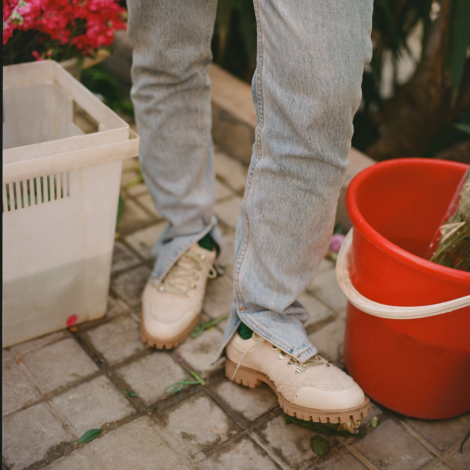 Cholewka: naturalny welur bydlęcy oraz bydlęca skóra licowa
