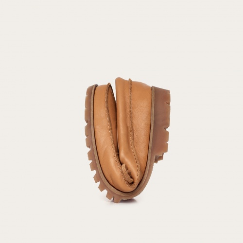 Mokasyny Tefer są mocowane na podeszwie z domieszką kauczuku - pamiętaj, że ich naturalny kolor zmienia się pod wpływem światła i temperatury. Nie martw się, jeśli przed pierwszym spacerem i ich podeszwy wydają Ci się mieć inny kolor niż na zdjęciu - daj Wam chwilę!