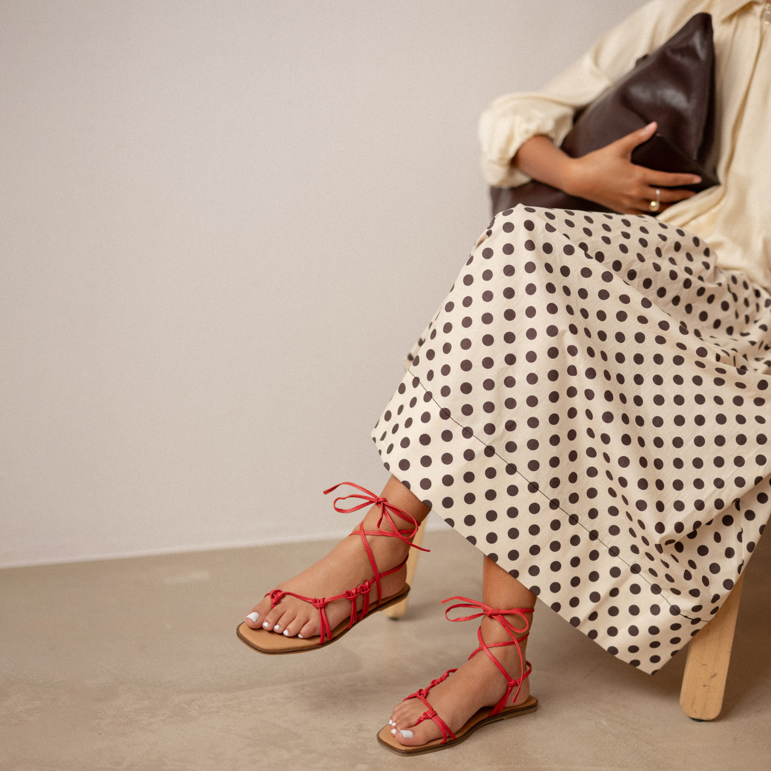 Supełki na regulowanym pasku tworzą dekoracyjną plecionkę, która oplata stopę, ładnie ją eksponując. Dzięki płaskiej podeszwie z minimalnym podwyższeniem z lekkością przemierzysz długie dystansy podczas letnich spacerów. Nof są uniwersalne – świetnie będą wyglądać zarówno z sukienką jak i spodniami z szerokimi nogawkami.