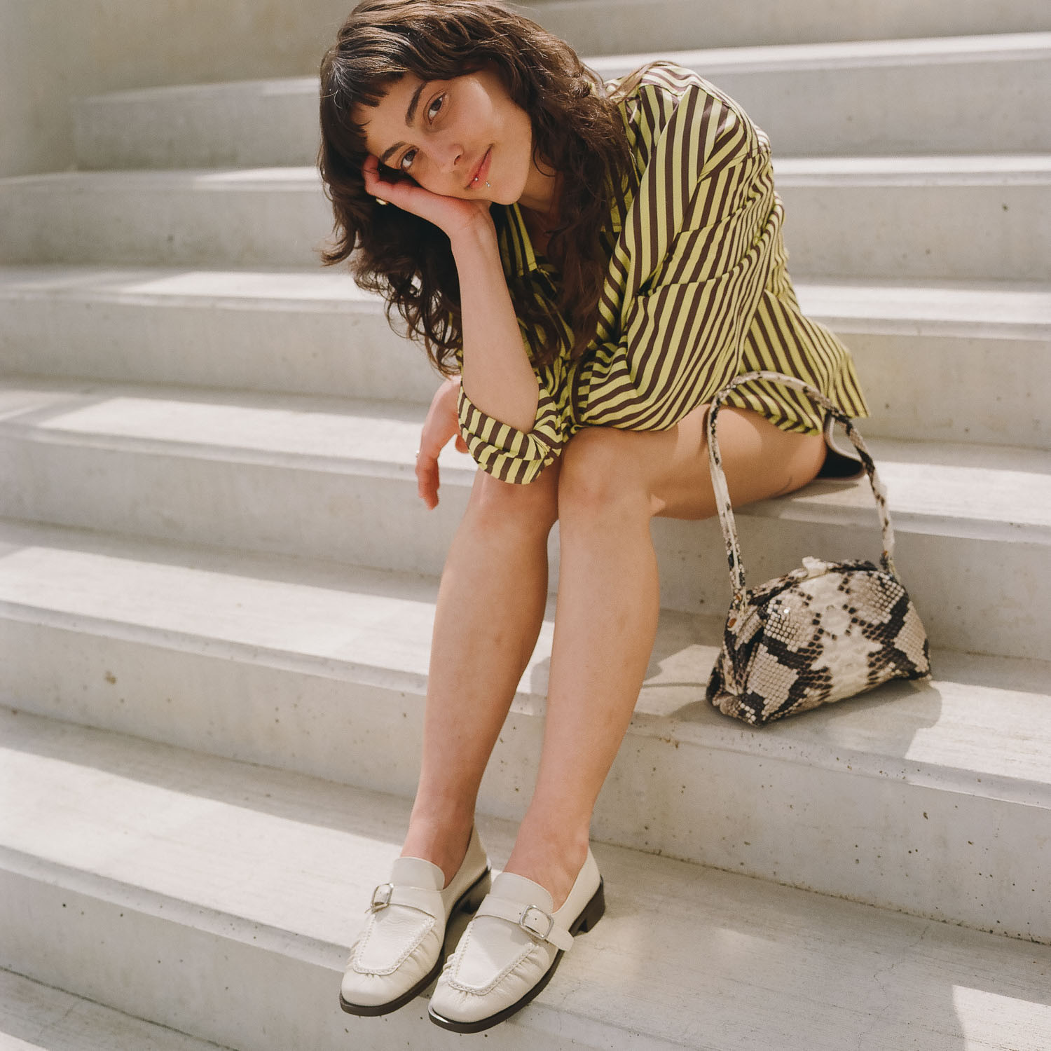 Hug bag torebka M, złamana biel wzór pytona