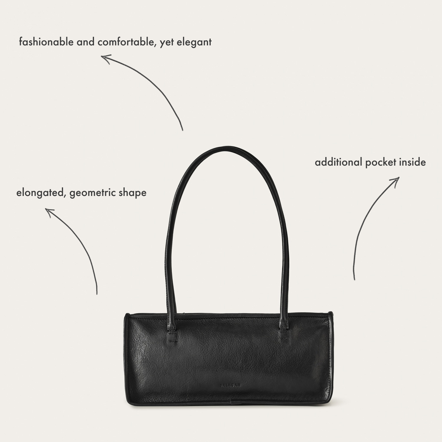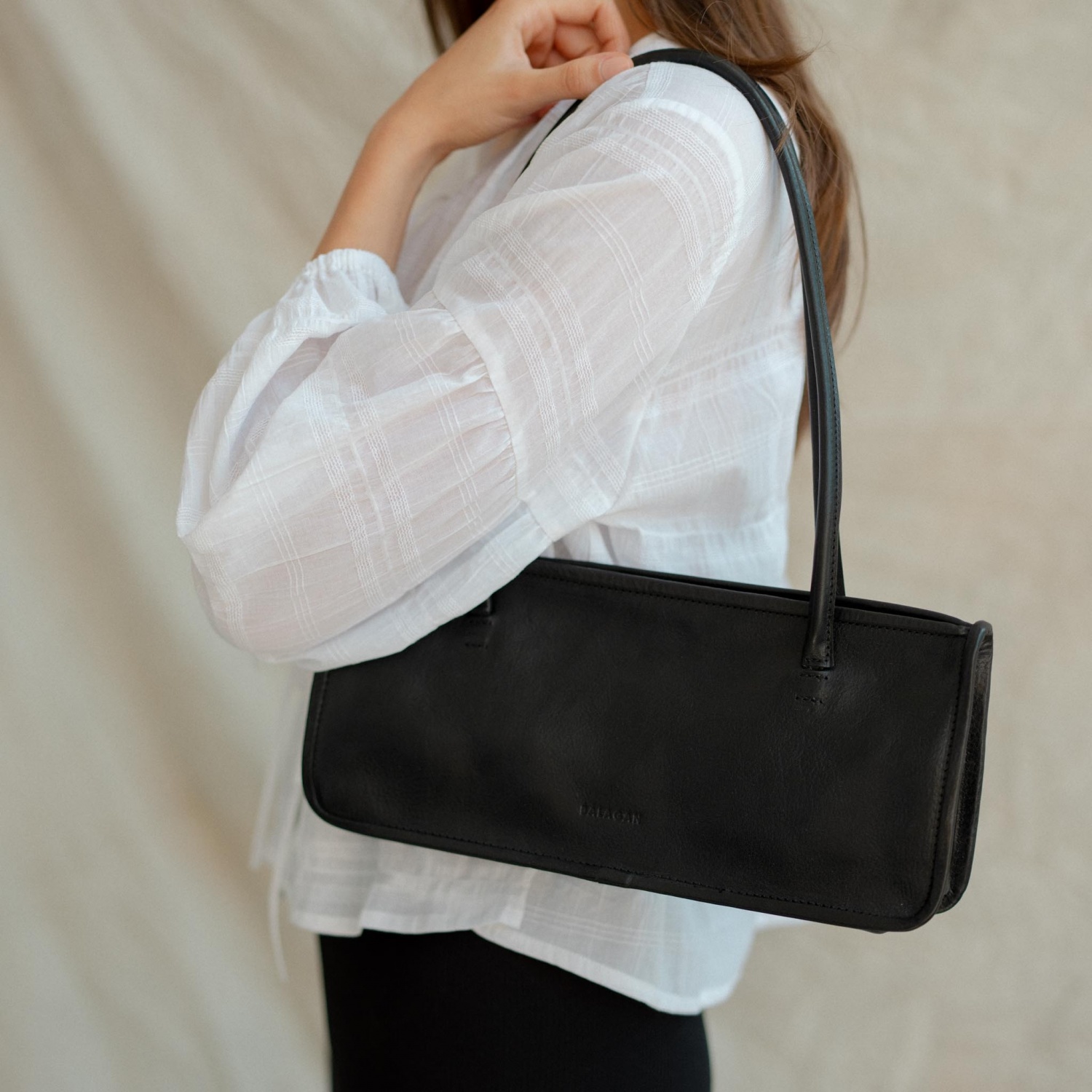 Tej torebce nie zdołasz się oprzeć! Wydłużony, geometryczny kształt, klasyczny kolor, poręczna wielkość. Jest modna i wygodna, a przy tym elegancka. Baguette leży wygodnie na ramieniu. Wykonana z miękkiej skóry garbowanej roślinnie, zamykana jest na suwak. Posiada wyraźnie zaznaczoną lamówkę. W środku znajdziesz dodatkową kieszeń, która pomaga uporządkować zawartość torebki.