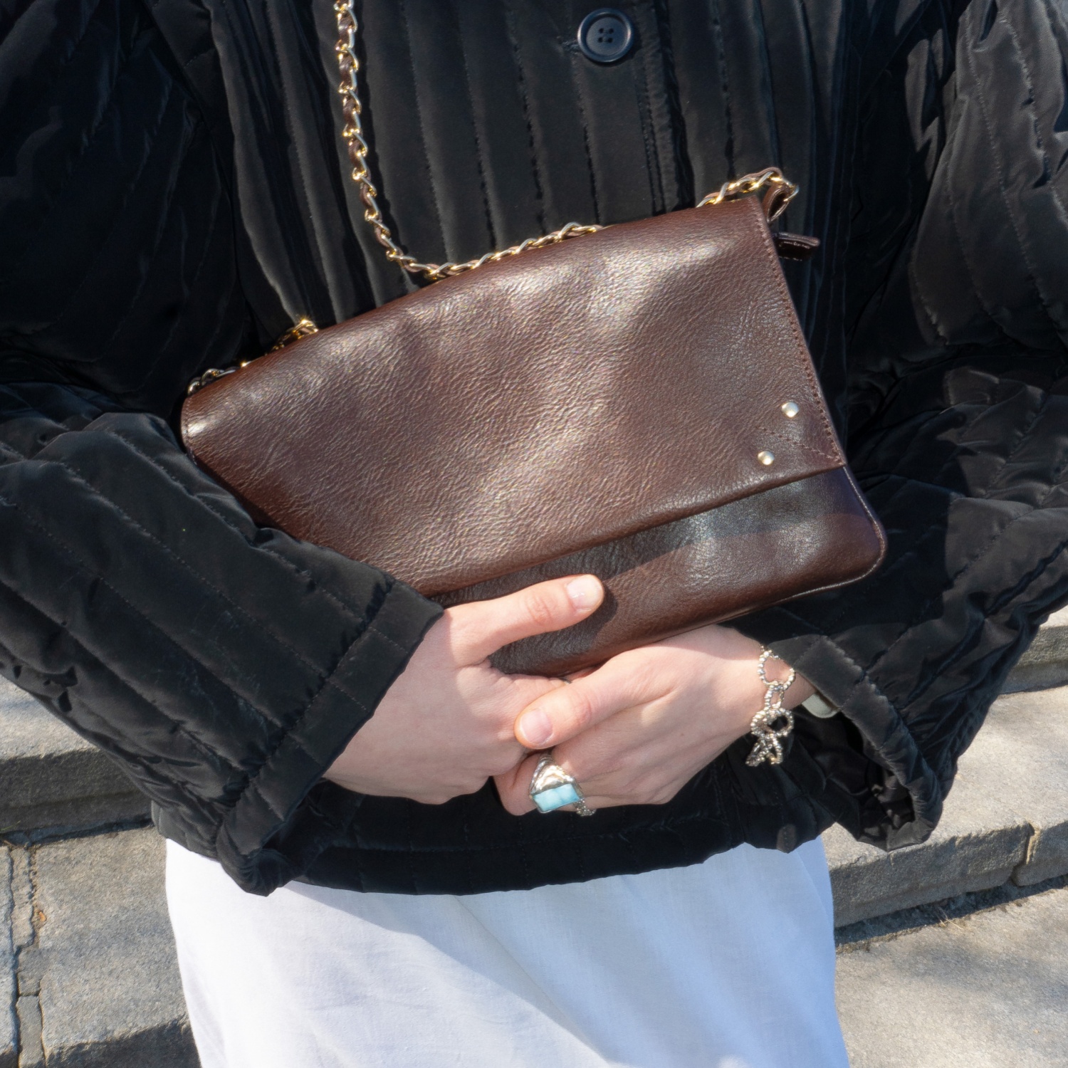Gabrielle to klasyczna torebka o ponadczasowym designie. Wykonana z wysokiej jakości skóry, ma prostą formę i eleganckie wykończenie – skórzany pasek przepleciony złotym łańcuchem. Jest pojemna i praktyczna, zmieści wszystko co potrzebne. Ma klapkę z magnetycznym zamknięciem, a w środku dodatkowy suwak.