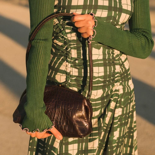 Hug bag to torebka z rodziny Rofe. Swoim kształtem jeszcze bardziej przypomina klasyczne, retro torebki i portmonetki z minionych dekad. Jest starannie uszyta z wysokiej jakości skóry bydlęcej garbowanej roślinnie, nie ma podszewki ani wewnętrznych kieszonek. Hug bag ma zaokrągloną szynę w kształcie półksiężyca, dzięki czemu otwiera się wygodnie i szeroko. Jest zamykana na klips i stabilnie zawieszona na krótkim, nieregulowanym pasku. Wygodna do noszenia na ramieniu oraz w dłoni - jak kopertówka w stylu vintage. Jest pojemna - zmieści więcej niż wyłącznie portfel, klucze i telefon, jej nowy kształt sprawia, że z łatwością zmieszczą się w niej także mała butelka z wodą, kosmetyczka, mały notes lub książka. Pasuje do eleganckich i codziennych stylizacji, dzięki klasycznej i minimalistycznej formie sprawdzi się zarówno do sukienki czy marynarki i czółenek na obcasie, jak i dżinsów i klapek czy sandałów.